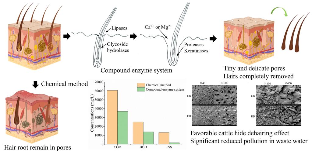 近期,365官网Beat365唯一官方网站李崎教授团队在皮革环保脱毛方面取得重要进展,研究成果“Significant alleviation of water pollution in leather dehairing through the construction and application of an eco-friendly compound enzyme system”正式发表于Journal of Environmental Chemical Engineering (IF =/info/1021/ /7.4) (https://doi.org/10.1016/j.jece.2025.115520)。
