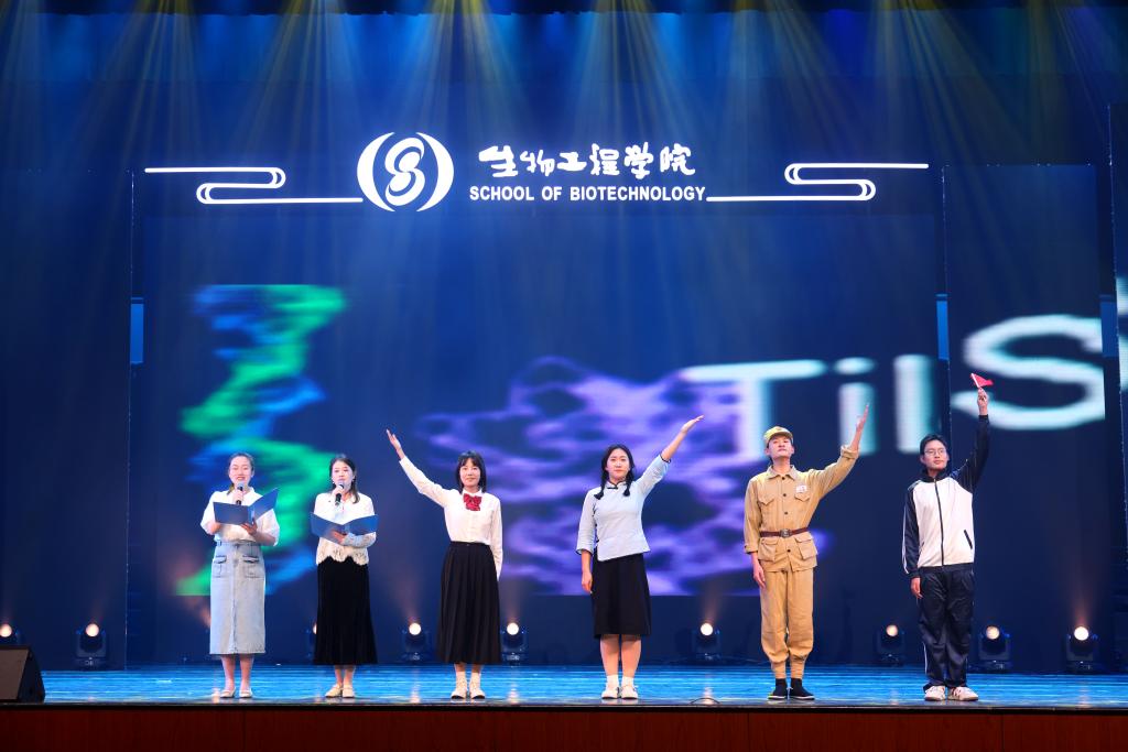 第二篇章,扬帆·生意盎然。江南好“生”音合唱团的同学们一首《向云端》唱响生工学子并肩向上、攀登高峰时最动人的和声;舞台剧《风华》以多场景并行、观众互动的沉浸式演绎,展现青年在那段烽火中的坚守与担当;由学院领导、学生代表带来的酷炫走秀《熠》引爆全场尖叫与呐喊,师生同乐、魅力无限。