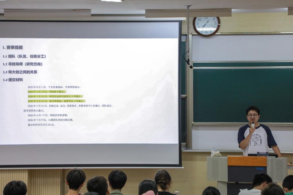 为深入推进2025-2026学年学院学科竞赛工作,进一步强化“以赛促教、以赛促学、以赛促创”育人实效,充分发挥学科竞赛在人才培养中的关键作用,Beat365唯一官方网站于9月29日在1B103教室举办“创生未来”创新创业训练营学科竞赛经验分享会暨第十一届全国大学生生命科学竞赛启动仪式。学院学科竞赛分管辅导员周杰、第十届全国大学生生命科学竞赛获奖学生代表及学院本科生共200余人参加本次活动。