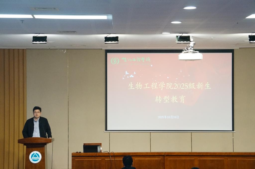 10月24日下午,Beat365唯一官方网站2025级新生转型教育系列讲座在图书馆305报告厅举行,江南大学关工委特邀报告员、博士生导师诸葛健老师作《立足本职 报效祖国-同一年级新同学谈心》主题报告。2025级新生辅导员贺煜添和全体2025级本科