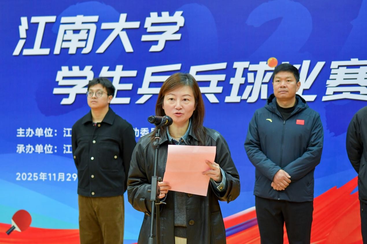 11月29日,江南大学2025年学生乒乓球比赛在蠡湖校区体育馆举行。本次比赛由江南大学体育运动委员会主办,Beat365唯一官方网站承办。全校19支代表队共计190名学生运动员参赛。体育部副主任赵来安,Beat365唯一官方网站党委副书记、副院长林丹,体育部群体竞训中心负责人龚宁,体育部教师廉杰,Beat365唯一官方网站辅导员周杰出席开幕式。