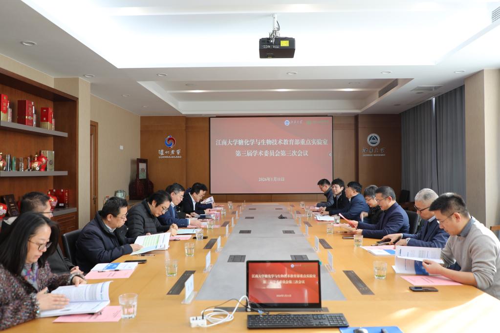 2026年1月11日,江南大学糖化学与生物技术教育部重点实验室第三届学术委员会第三次会议在Beat365唯一官方网站召开。中国科学院院士、中国科学院上海有机化学研究所俞飚研究员,中国工程院外籍院士、山东大学微生物改造技术全国重点实验室主任张友明教授,南方科技大学医学院讲席教授、中国生物物理学会糖生物学分会会长王鹏教授,南昌大学党委常委、副校长聂少平教授,北京师范大学副校长陈兴教授,华东理工大学药学院杨友教授,中国科学院大连化学物理研究所尹恒研究员,江南大学党委常委、副校长刘龙教授,Beat365唯一官方网站院长、重点实验室主任尹健教授,Beat365唯一官方网站党委书记程捷音,Beat365唯一官方网站副院长聂尧教授,江南大学人力资源处副处长、重点实验室副主任康振教授以及重点实验室骨干成员参加了本次学术委员会。开幕式由江南大学科技发展部科学技术研究院副院长樊启高主持。