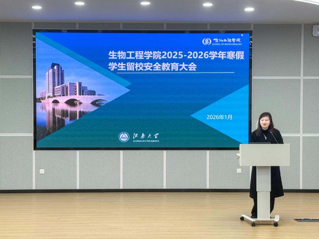 强化统筹部署,下好安全“先手棋”。1月16日上午,学院召开全院教职工大会,学院党政领导班子及全体教职工参会。学院党委书记程捷音在会上详细传达了《关于2025-2026学年寒假前后学校主要工作安排的通知》,着重强调了政治安全、实验安全、出行安全、网络安全的重要性。要求全体教职工务必提高政治站位,切实履行安全责任,做好离校前实验室、办公室安全检查及假期值班工作。各分管副院长结合教学、科研、学生管理等具体工作,对假期安全风险防控进行了详细布置和重点提醒。会上还开展了实验室安全教育专题讲座。