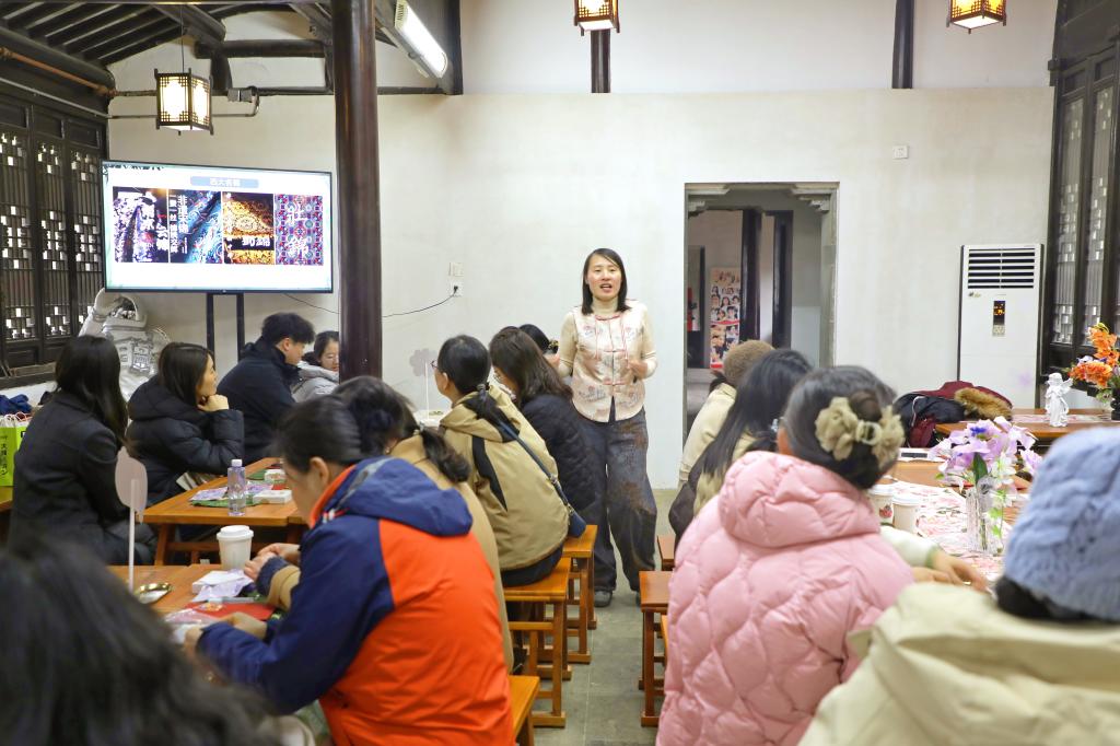 活动现场,授课老师系统讲解了宋锦的历史渊源、工艺特色与文化价值。宋锦色泽华丽,图案精致,质地坚柔,它与南京云锦、四川蜀锦一起,被誉为我国的三大名锦。2009年宋锦被列入第四批世界非物质文化遗产。