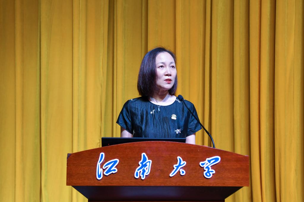江南大学1999届校友、新生家长代表王苹发言。作为“天下江南人”,她满怀深情的为同学们感到骄傲。千里之行始于足下,她祝福同学们在这片沃土活出精彩人生,书写灿烂未来。