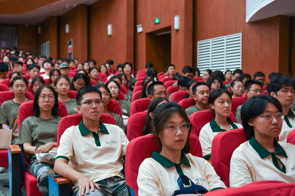硕士研究生、留学生班主任代表赵鑫锐寄语新生。他希望同学们锚定目标,敢闯敢试;广泛涉猎,持之以恒;守护健康,保持乐观。大学生活里充满无限可能,他期待在未来见到硕果累累、成熟自信的同学们。